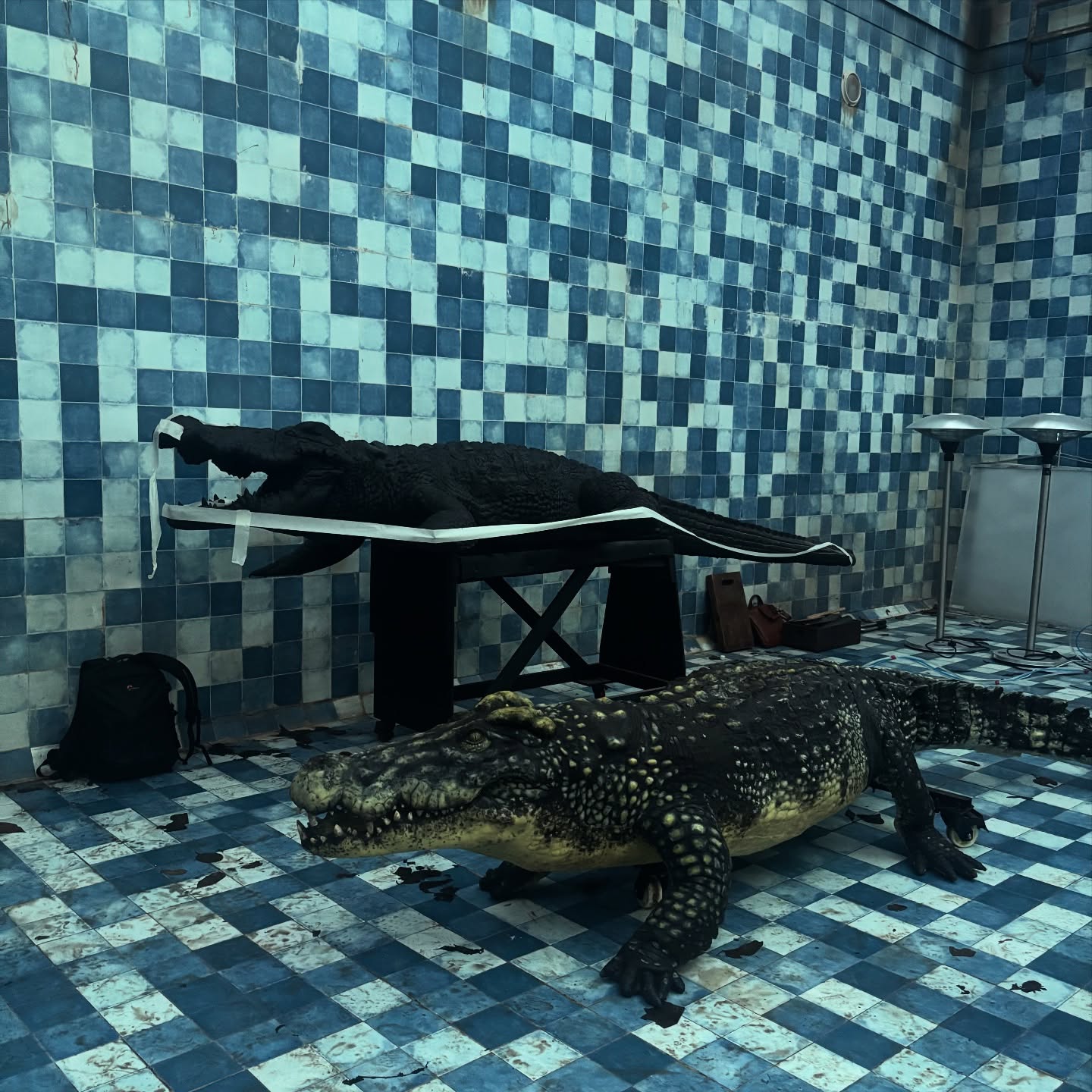 Хищник сбежал из ближайшей фермы во время сильного ливня и случайно провалился в бассейн вслед за героями, став для них главной угрозой в замкнутом пространстве.